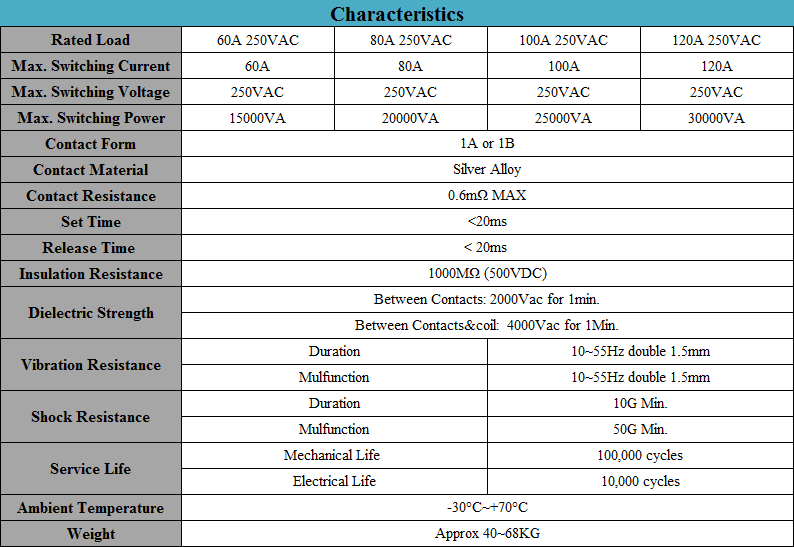 • 60A~120A Contact Switching Capability